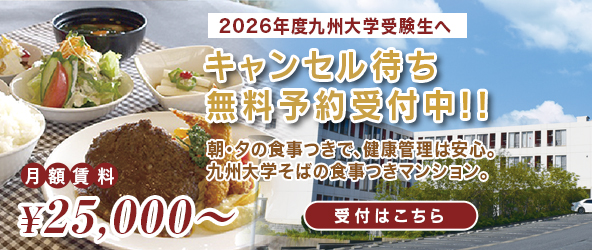 九州大学伊都キャンパスそば、食事付き学生マンション